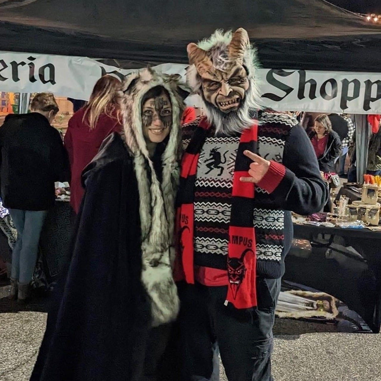Krampus began his American ascent in the early 2000s, propelled by a combination of pop culture, social media, and a burgeoning interest in alternative holiday celebrations. Horror enthusiasts, fascinated by his menacing visage and dark backstory, championed Krampus as a refreshing antidote to the commercialized and homogenized versions of Christmas that dominate American culture. Of course, Krampus is now being commercialized as well—and as the owners of a Krampus mask, ornaments, playing cards, socks, sweater, and scarf … yes, I guess we are partly to blame.